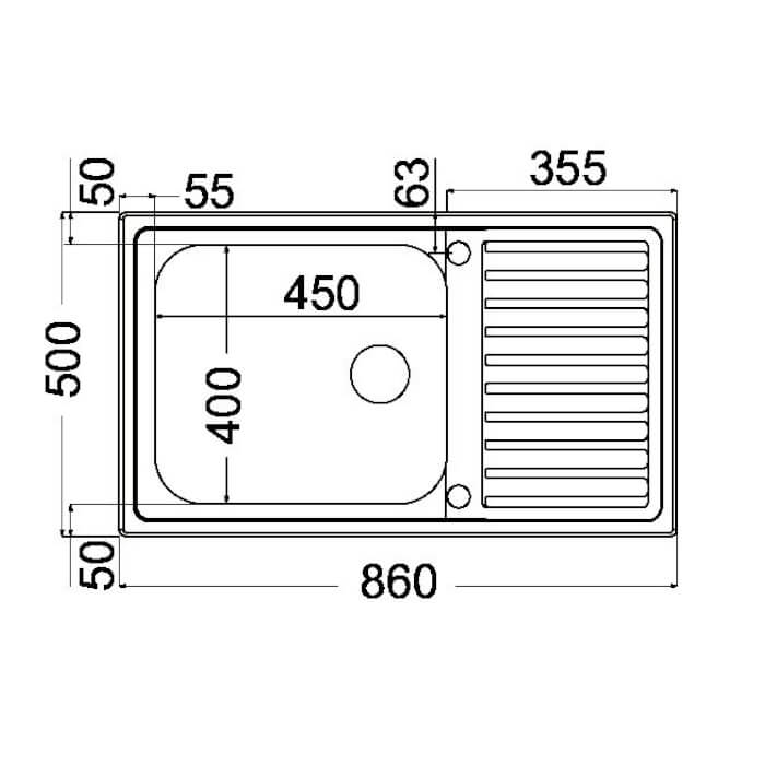 Ανοξείδωτος Λείος Ένθετος Νεροχύτης Με 1 Γούρνα 86×50 cm
