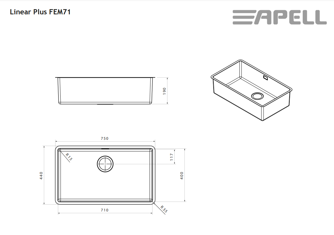 Apell Linear Plus Υποκαθήμενος Αθόρυβος Ανοξείδωτος Νεροχύτης (75×44)cm Satin FEM71-110