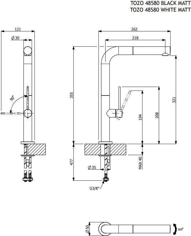 • Περιστρεφόμενο Ρουξούνι Με Συρόμενο Ντους 2πλής Ροής (shower/spray)