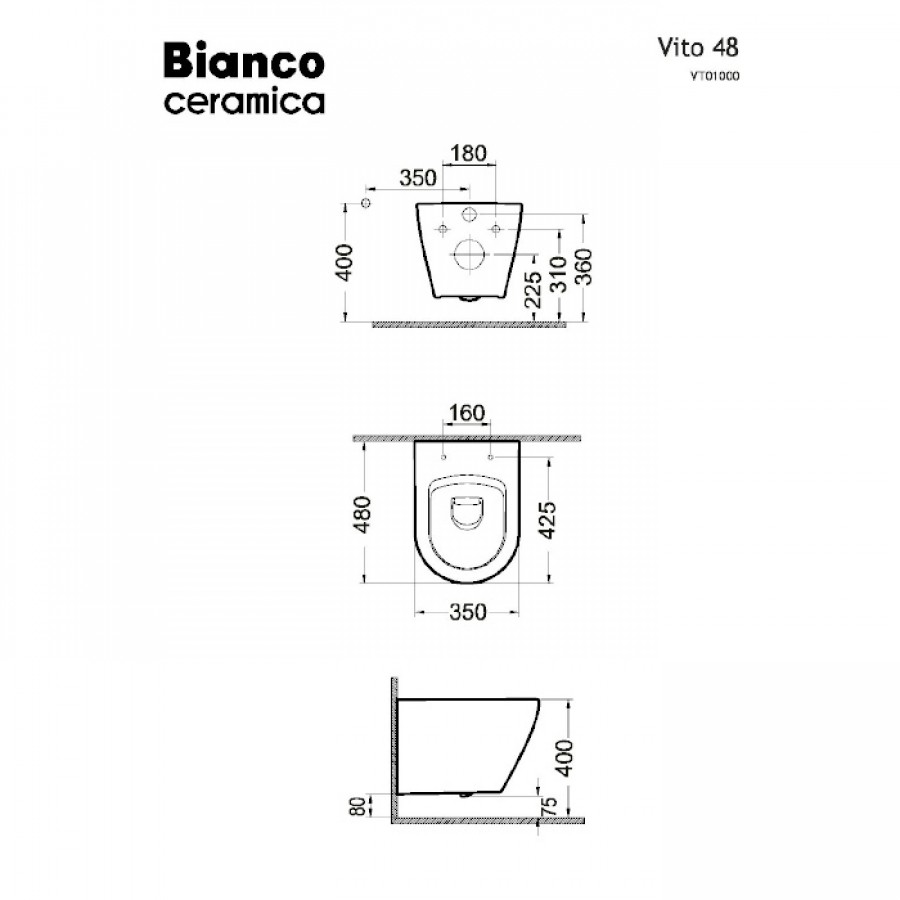 BIANCO Vito Κρεμαστή Λεκάνη 48cm Με Κάλυμμα Βακελίτη Απλό VT01000-300