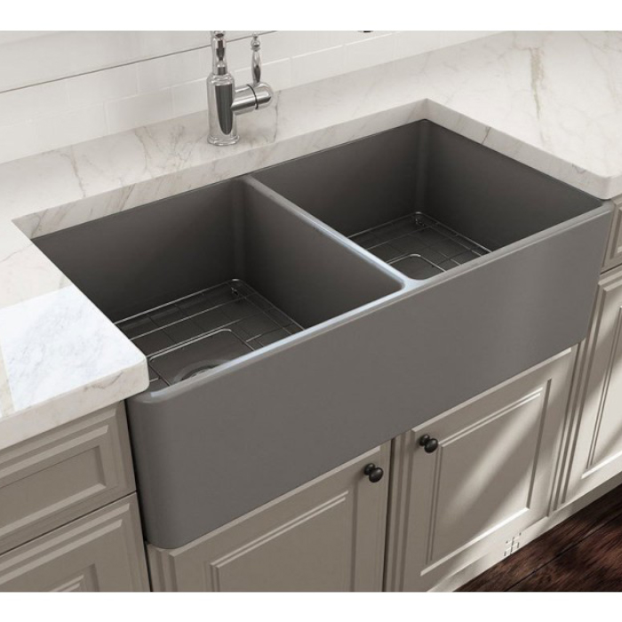Bocchi Νεροχύτης Πορσελάνης Επικαθήμενος Με 2 Γούρνες (84×46)cm Grey Matt 1139-411