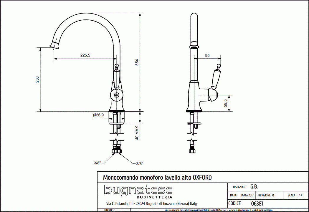 Bugnatese Oxford Μπαταρία Κουζίνας Χρώμιο Με Περιστρεφόμενο Ρουξούνι 6381-100