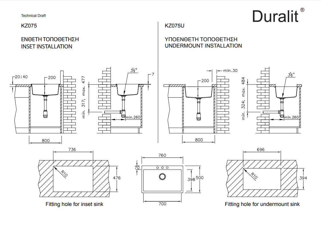 Duralit Ένθετος Συνθετικός Νεροχύτης (76×50)cm Beige kz075-500