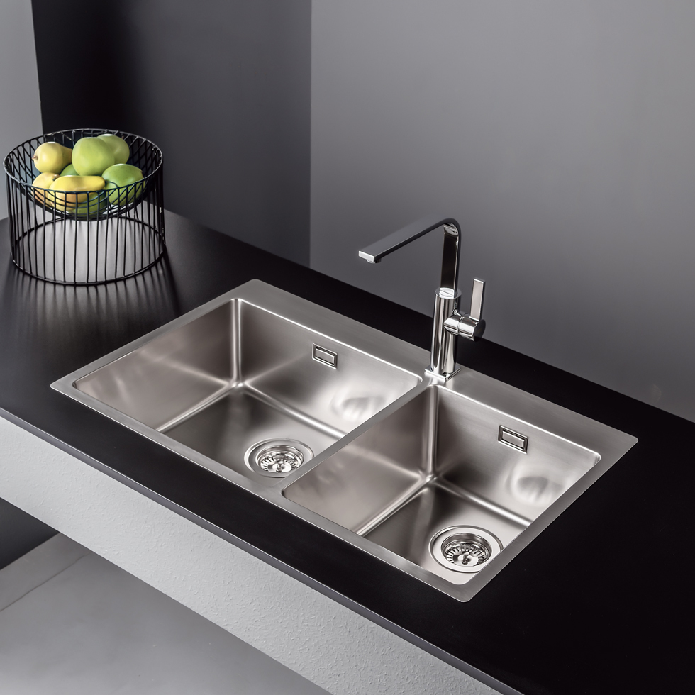 Fortinox Squadro Ένθετος Αθόρυβος Νεροχύτης Από Ανοξείδωτο Χάλυβα (86×50,5)cm Λείος 29285-110