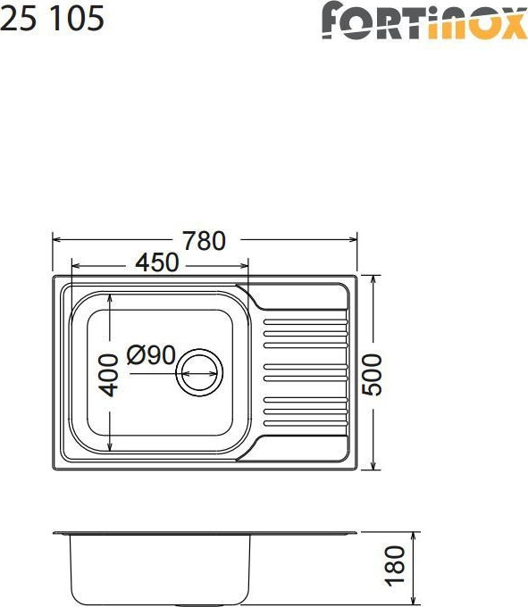 Fortinox Valley Ένθετος Αθόρυβος Ανοξείδωτος Νεροχύτης (78×50)cm Λείος 25105-110