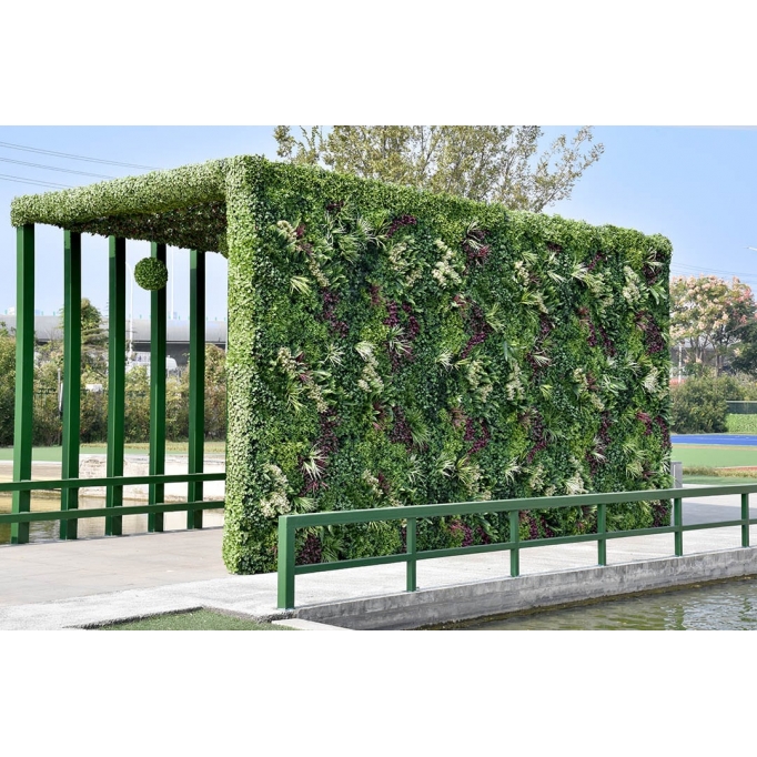 Συνθετικό διακοσμητικό πάνελ με πυκνή φυλλωσιά, σε πλακίδιο 1m x 1m. Έχει τρισδιάστατη όψη και δίνει μια αίσθηση ζωντάνιας και φυσικότητας στον χώρο σας. Διακοσμήστε τον εξωτερικό ή εσωτερικό χώρο σας με τα πάνελ φυλλωσιάς και δημιουργήστε έναν μοναδικό κάθετο κήπο.