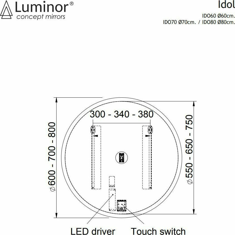 Luminor Idol 60 Φωτιζόμενος Στρογγυλός Καθρέπτης Μπάνιου Φ60cm IDO60