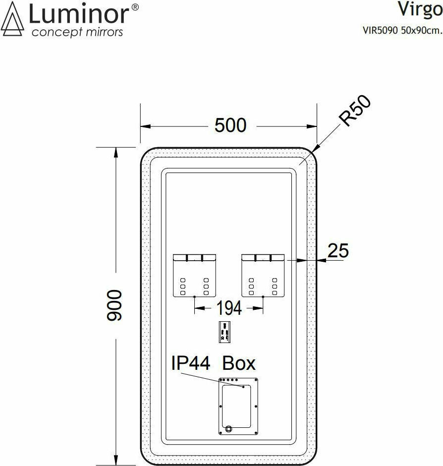 Luminor Virgo 50 Φωτιζόμενος Καθρέπτης Μπάνιου 50x90cm VIR5090