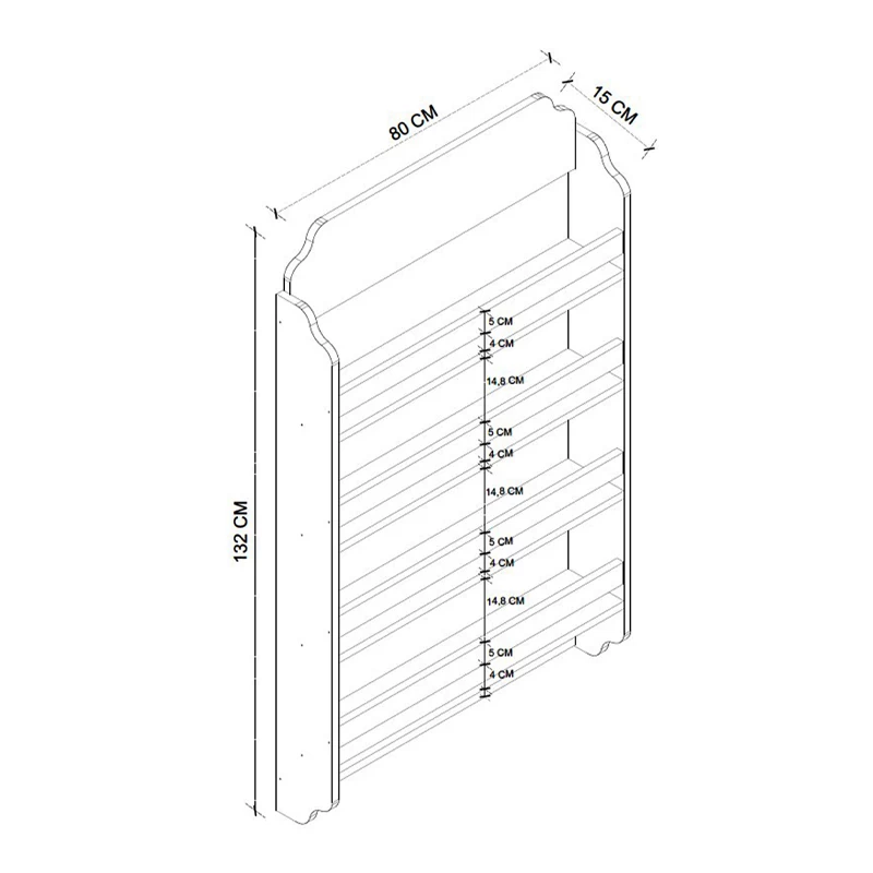 Διαστάσεις: Μήκος 80 x Βάθος 15 x Ύψος 132 εκ.