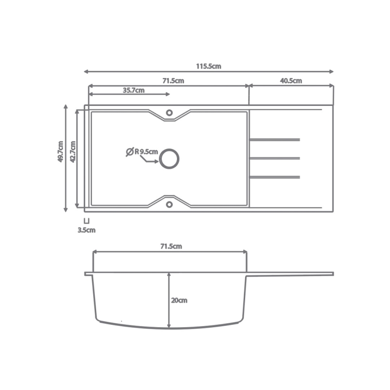 Sanitec ultra granite 817 Εντοιχίζεται σε ερμάριο 80εκ 116×50