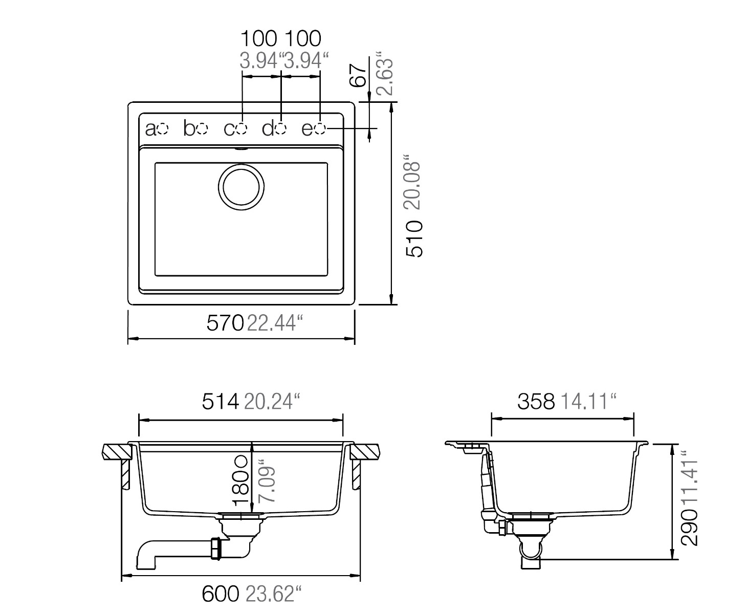 Νεροχύτης Cristalite Manhattan της εταιρείας Schock, κατασκευασμένος από συνθετικό γρανίτη. Είναι ανθεκτικός σε χτυπήματα, γρατσουνιές και λεκέδες, ενώ η επιφάνεια του είναι ομοιογενής χωρίς πόρους, που αποτρέπει τη συσσώρευση των βακτηρίων. Επίσης δεν αποχρωματίζεται όταν έρθει σε επαφή με χημικά καθαριστικά κουζίνας, όμως χρειάζεται προσοχή σε περίπτωση που έρθει σε επαφή με πολύ υψηλές θερμοκρασίες, καθώς τότε μπορεί να υπάρξει χρωματική αλλοίωση. Από αισθητικής άποψης, μπορεί να τονίσει τη διακόσμηση οποιασδήποτε κουζίνας χάρη στο ιδιαίτερο γκρι χρώμα του.