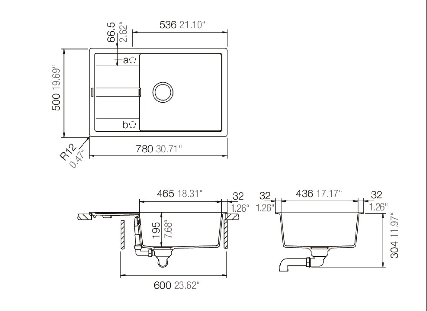 Διαθέτει μια μεγάλη γούρνα, που διευκολύνει το πλύσιμο μεγάλων σκευών, όπως για παράδειγμα ταψιά. Παράλληλα, έχει μια μικρή ποδιά αποστράγγισης με ειδικές γραμμές που οδηγούν το νερό της επιφάνειας μέσα στη γούρνα, ώστε να ακουμπάτε μερικά πλυμένα αντικείμενα (πχ ποτήρια) και να στεγνώνουν πιο γρήγορα.