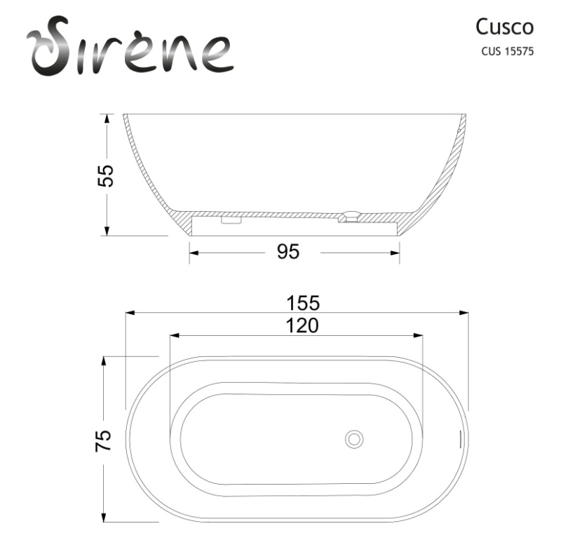 SIRENE Cusco Cast Marble 155x75cm Μπανιέρα Ελεύθερης Τοποθέτησης Black Matt CUS15575-401