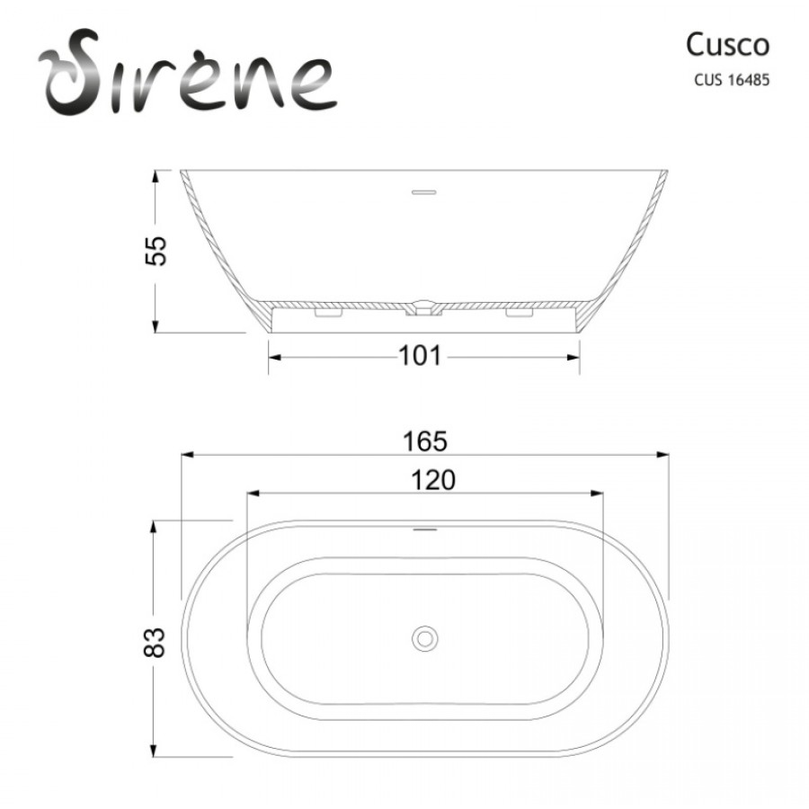SIRENE Cusco Cast Marble 165x85cm Μπανιέρα Ελεύθερης Τοποθέτησης White Matt CUS16585-301